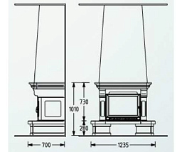 Топка на фото - DESIGN D1350. Ссылки на подходящие к данному камину топки указаны справа под техническими характеристиками. Возможна адаптация под топки любых размеров.