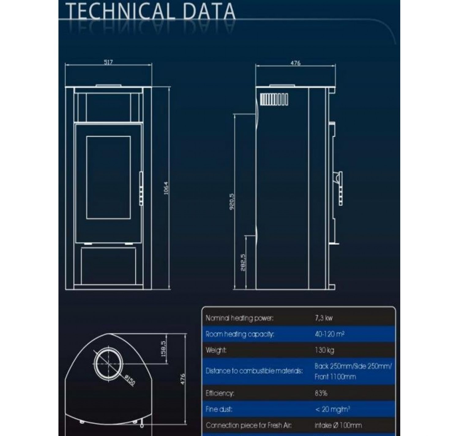 • Диаметр дымохода, (мм)
