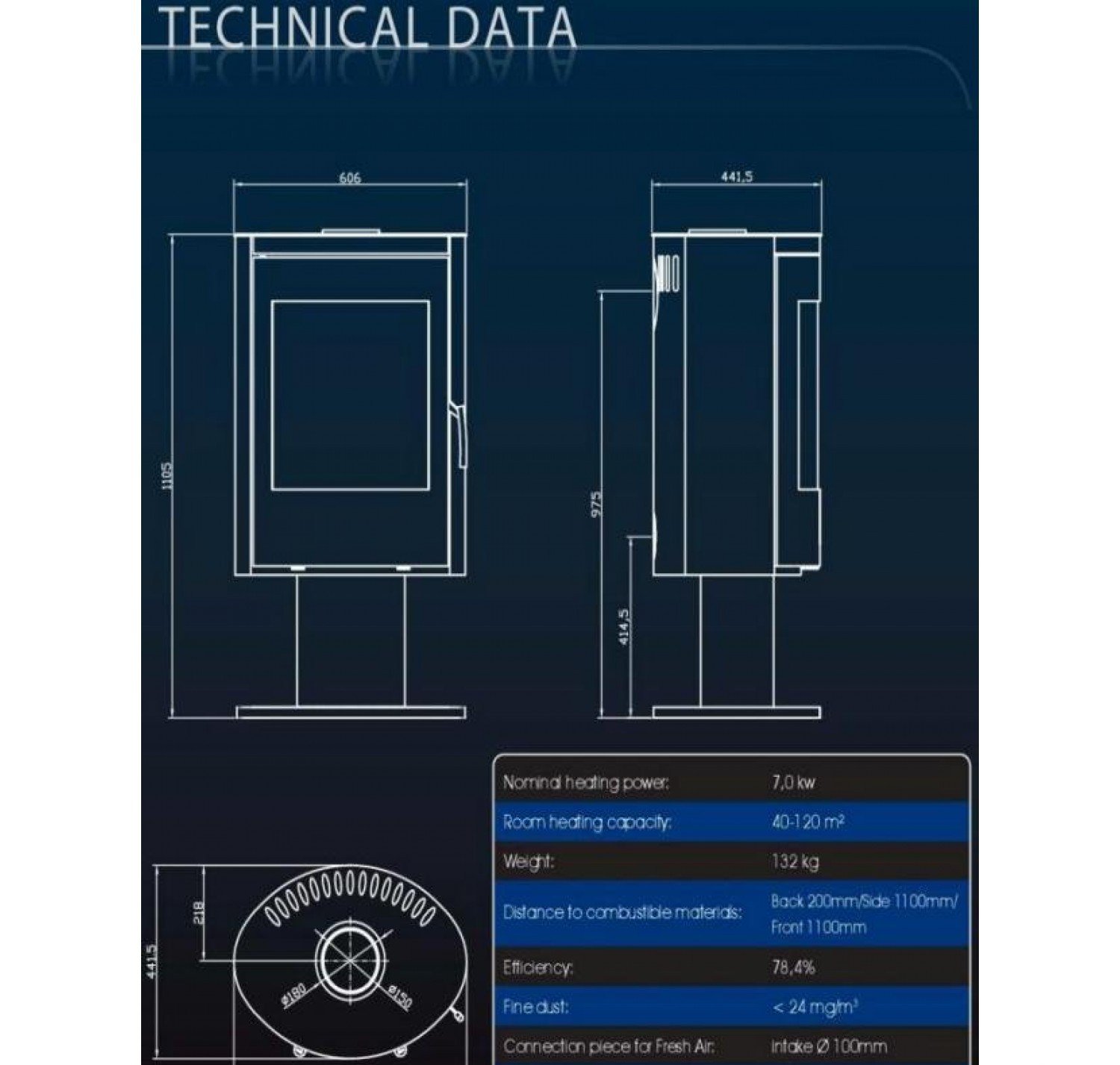 - Диаметр дымохода, (мм) 150 мм.