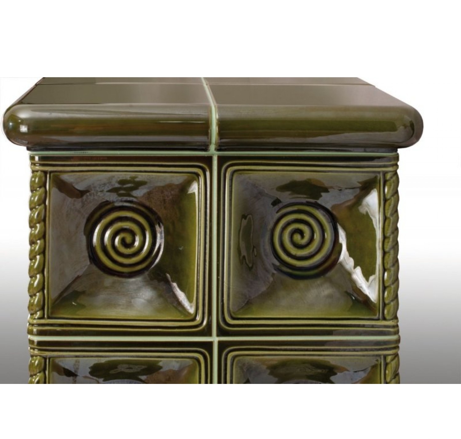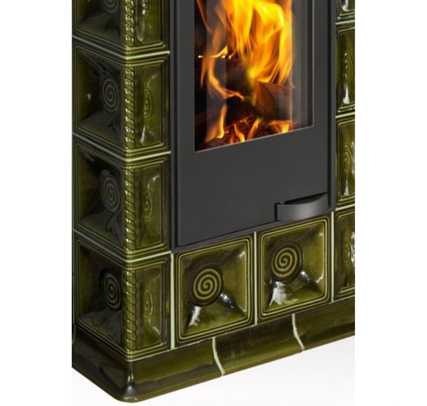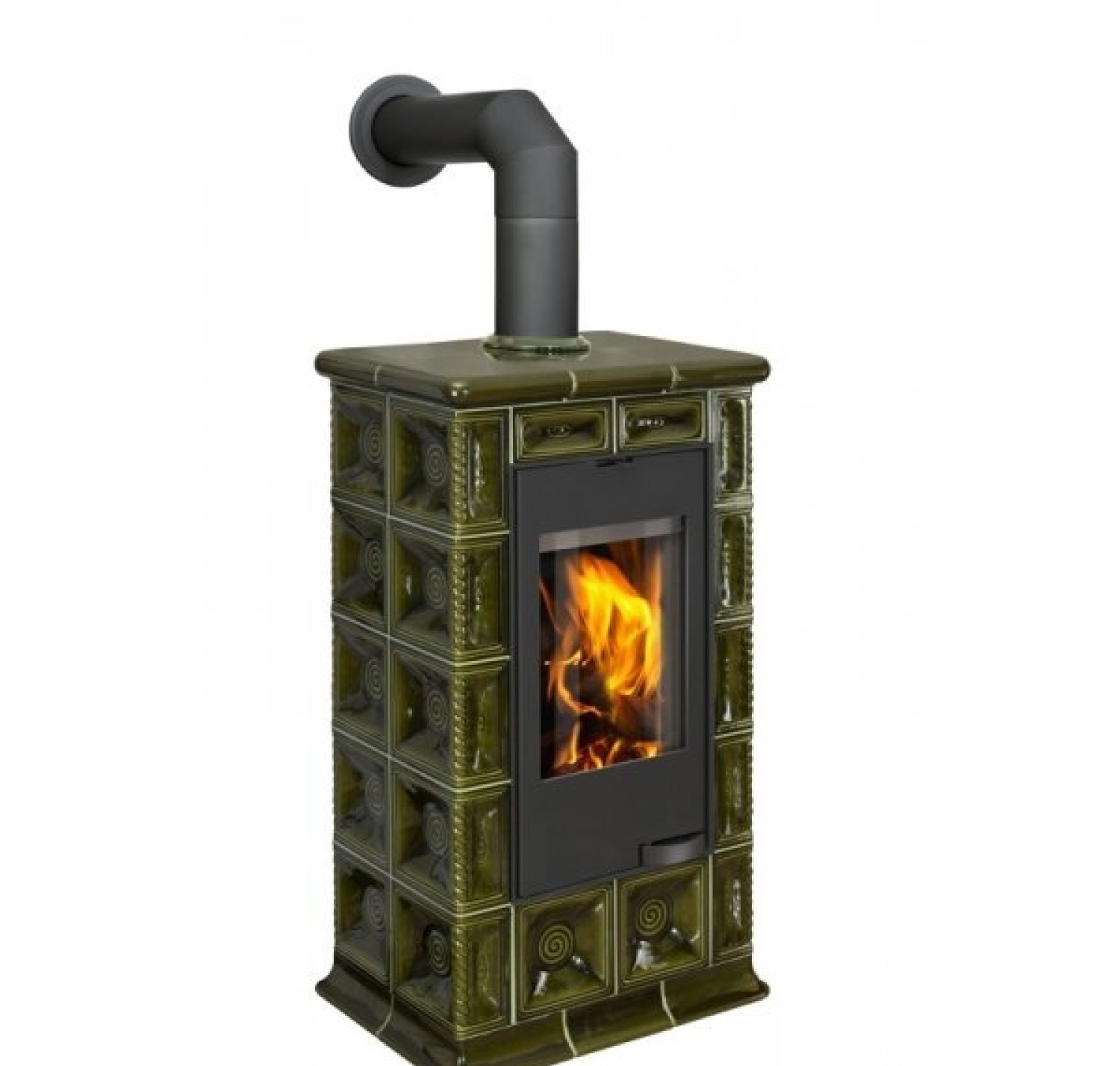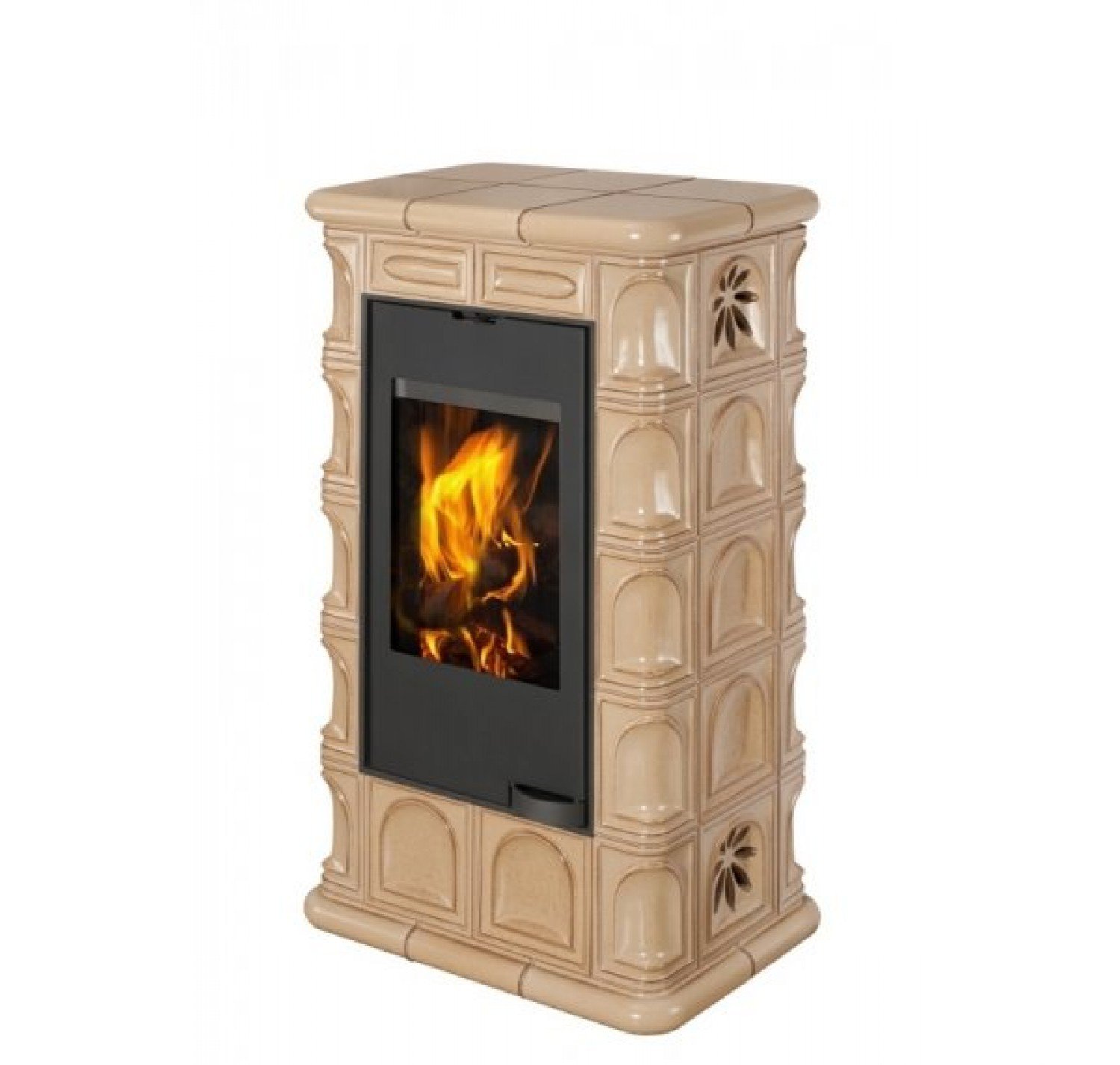 С помощью изразцового декора Ваш дом преобразится до неузнаваемости и станет настоящим произведением искусства. Большие керамические блоки, которые используются в облицовке данной модели также несут функцию теплонакопительных модулей (аккумуляция), которые позволяют излучать тепло в течении нескольких часов после того как огонь погаснет. Данная модель отлично подходит для отопления любого помещения, объем которого не превышает 220 м3. Застеклённая дверца повышает визуальный контакт с пылающим огнем. Керамическая облицовка оригинальна, но вместе с тем, сдержанно элегантна. Аккуратно сделаны и обработаны мельчайшие элементы, углы, плавные линии.