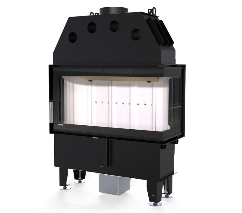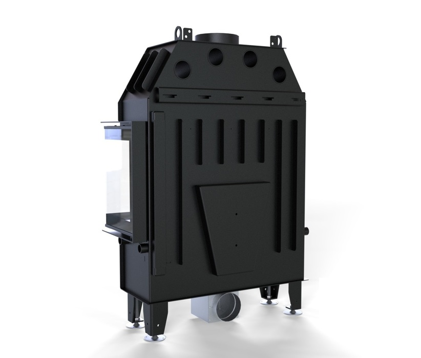 Изготовлена из стали с порошковым покрытием и имеет эффективность нагрева 80,1 %. Устройство с центральной подачей воздуха снаружи и возможностью ее регулировки. Специальная конструкция на трубе для подачи воздуха в топку, дает возможность изменить направление подачи воздуха на боковое. Плотно размещенные радиаторы способствуют передачи больше тепла окружающей среде, а воздуховоды повышают эффективность камина.