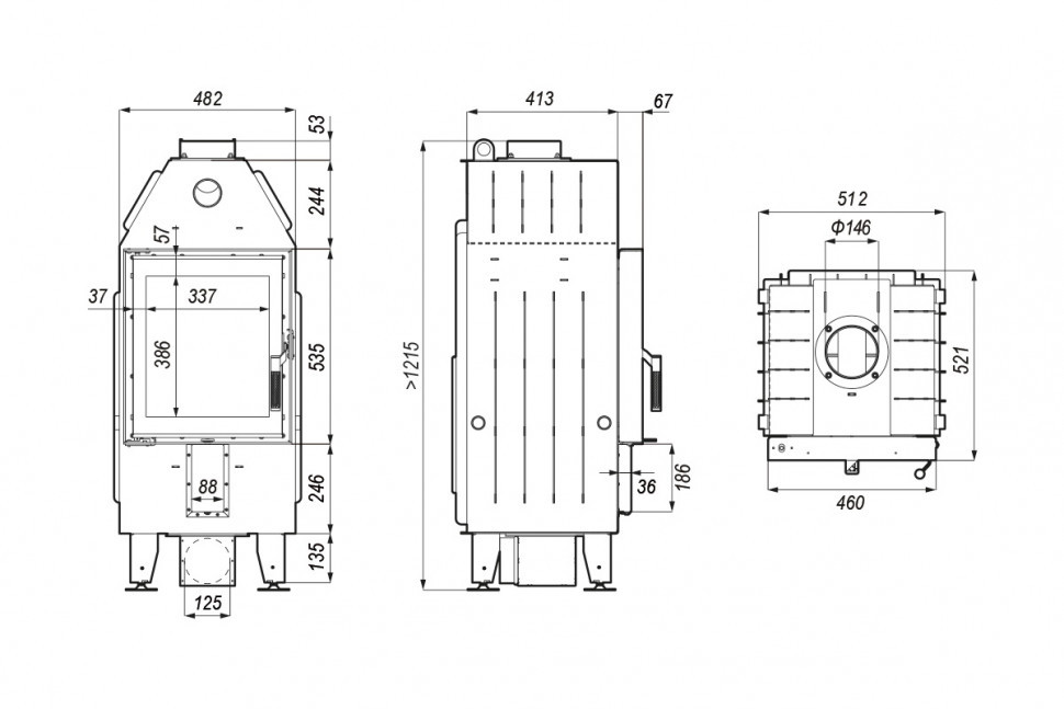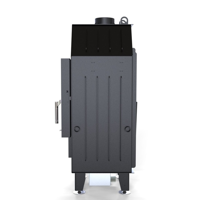 Изготовлена из стали с порошковым покрытием и имеет эффективность нагрева 80,9 %. Устройство с центральной подачей воздуха снаружи и возможностью ее регулировки. Специальная конструкция на трубе для подачи воздуха в топку, дает возможность изменить направление подачи воздуха на боковое. Плотно размещенные радиаторы способствуют передачи больше тепла окружающей среде, а воздуховоды повышают эффективность камина.