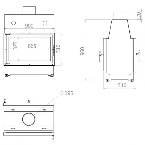 Дровяная каминная топка Echa-Tech Double 90x51/C (туннель, футеровка чугун) - это стальная конструкция, камера сгорания в которой усилена пластинами из чугуна, чтобы не допустить деформации металла от воздействия высокой температуры. Особенностью данной топки является тоннельное остекление и возможность установки, например, в стене между комнатами.