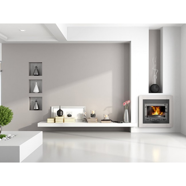 Для защиты корпуса каминной топки в конструкции топочной камеры также установлена двойная задняя стенка с красивым и объёмным рисунком, которая обеспечивает долговечность каминных топок KAWMET.