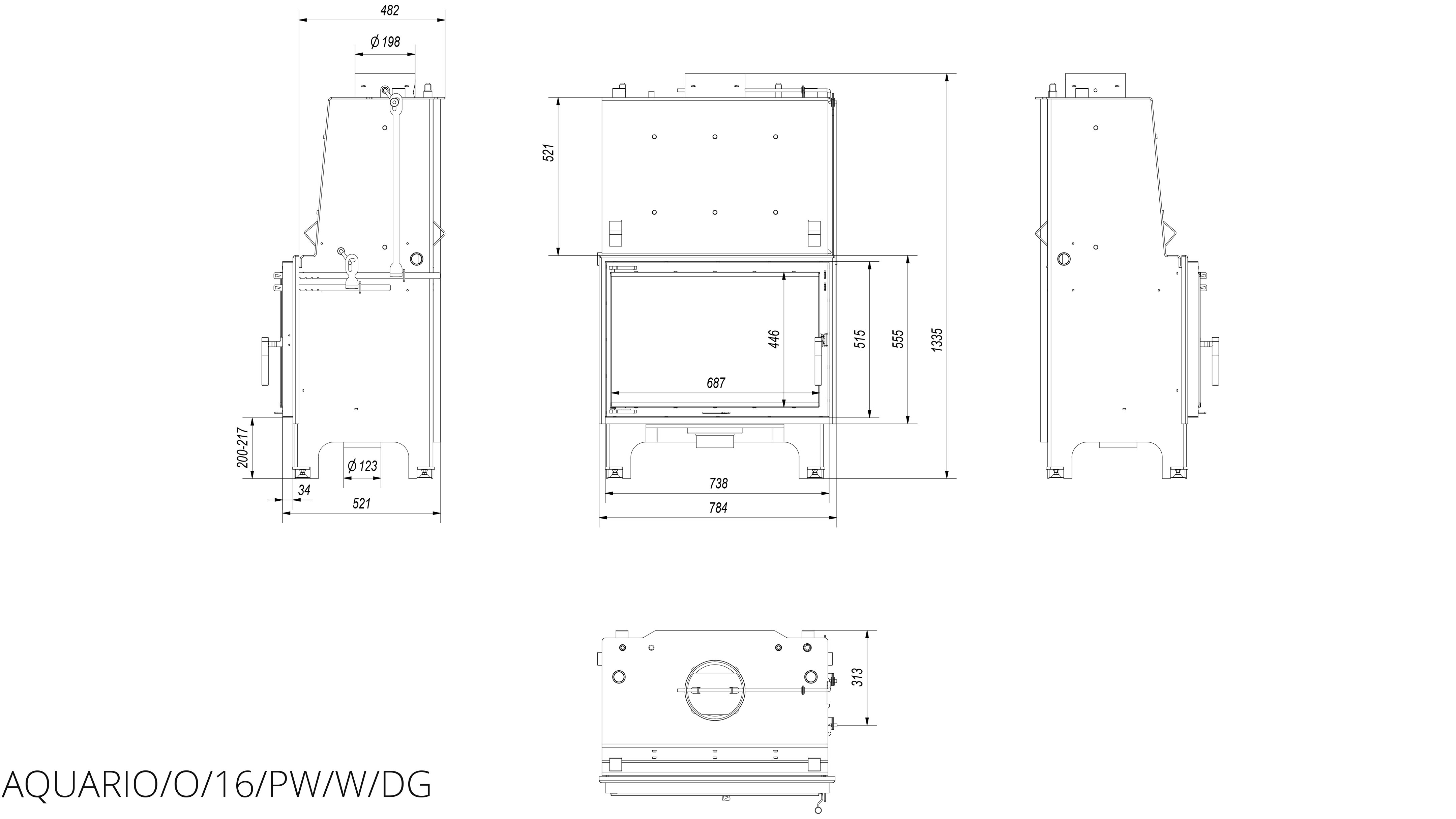 Каминная топка Kratki Aquario/O/16/PW/W/DG