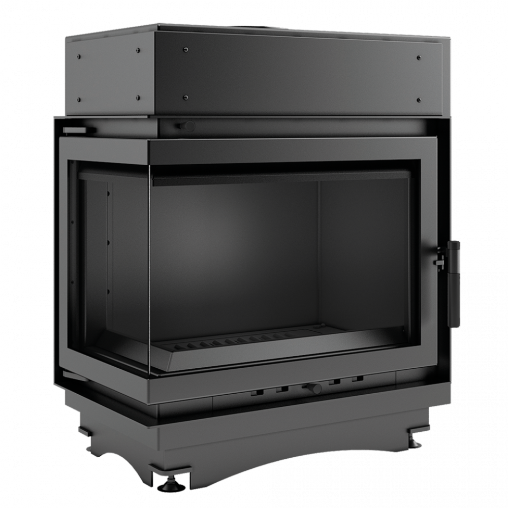 • Каминная топка с двумя стеклянными панелями, сопоставленными друг напротив друга под прямым углом (стеклянные панели соединены без рамы).