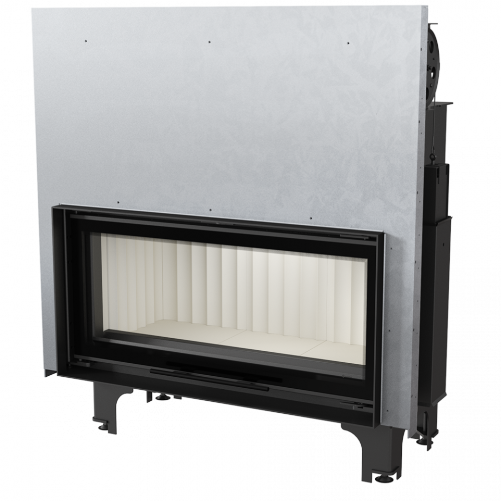 - Дверцы топки работают в системе lift up - стеклянная панель поднимается вверх. Эта система была построена, опираясь в противовес - два блока (по обоим сторонам двери) со стальной рейкой работают в направляющих на двух несущих роликах, благодаря чему вес двери равномерно распределяется. Они движутся вдоль на огнеупорных роликах, установленных в дверной раме, что гарантирует их лёгкое, тихое и бесперебойное функционирование. Движение дверец происходит на расстоянии пару миллиметров от корпуса, что предотвращает повреждение герметизации. Дверцы, которые закрываются, с большой силой погружаются в дверную раму, благодаря чему камера сгорания есть полностью герметичной.