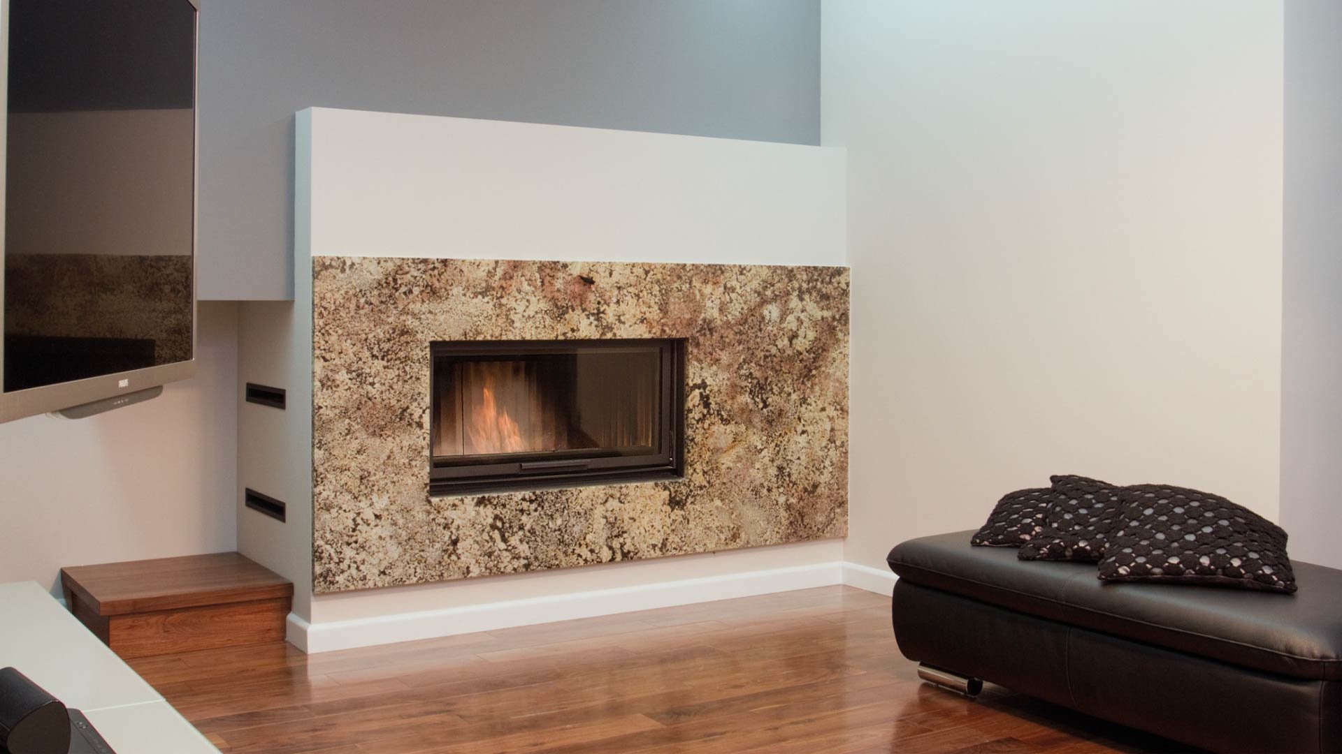 - Стабильные и выносливые к нагрузке дверцы камина изготовлены из закрытого профиля. Герметизация дверец расположена в профилированном канале, что гарантирует его надлежащую адгезию и предотвращает выпадение во время эксплуатации.