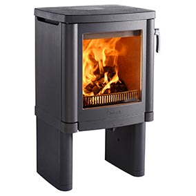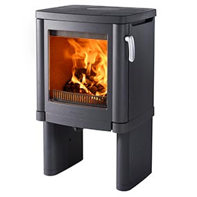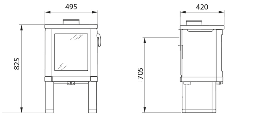 Модель с закрытыми боковыми панелями. Конвекционные отверстия по бокам, конфорка, красивая хромированная ручка дверцы топки (которую при желании можно заменить на чугунную ручку черного цвета).