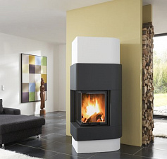 Модель будет особенно удачна расположена в каминных облицовках углового или пристенно-углового варианта, требующих обзора с двух сторон.