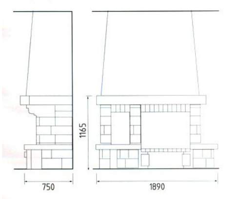 Цена указана за камин в стандартном исполнении (см. чертеж) из указанных материалов без топки.