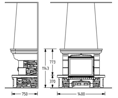 Цена указана за камин в стандартном исполнении (см. чертеж) из указанных материалов без топки.