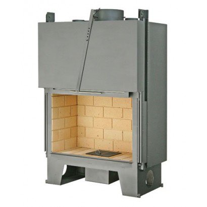 Топка оснащена системой очистки стекла, встроенным шибером и системой подводки внешнего воздуха в камеру сгорания, а также оборудована цепным механизмом подъема двери, съемной колосниковой решеткой и ножками, которые дадут возможность установить топку на неровной поверхности.