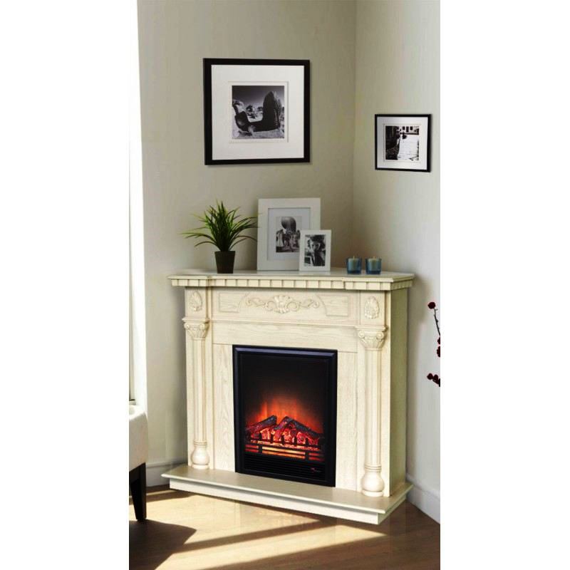 - Угловой вариант исполнения электрокамина позволяет устанавливать его, без ущерба для ограниченного пространства, в маленьких помещениях, а сдержанная красивая архитектура украсит интерьер.