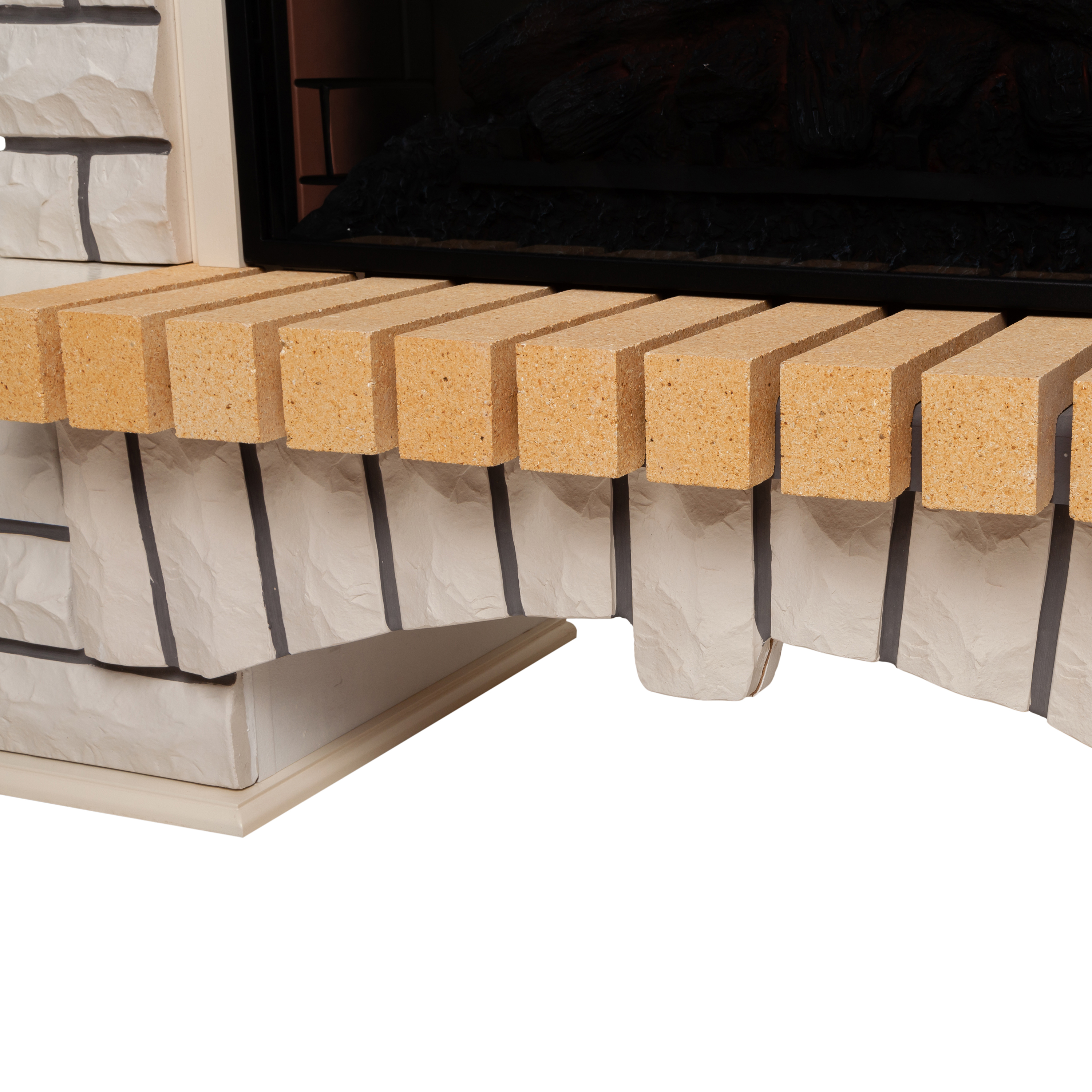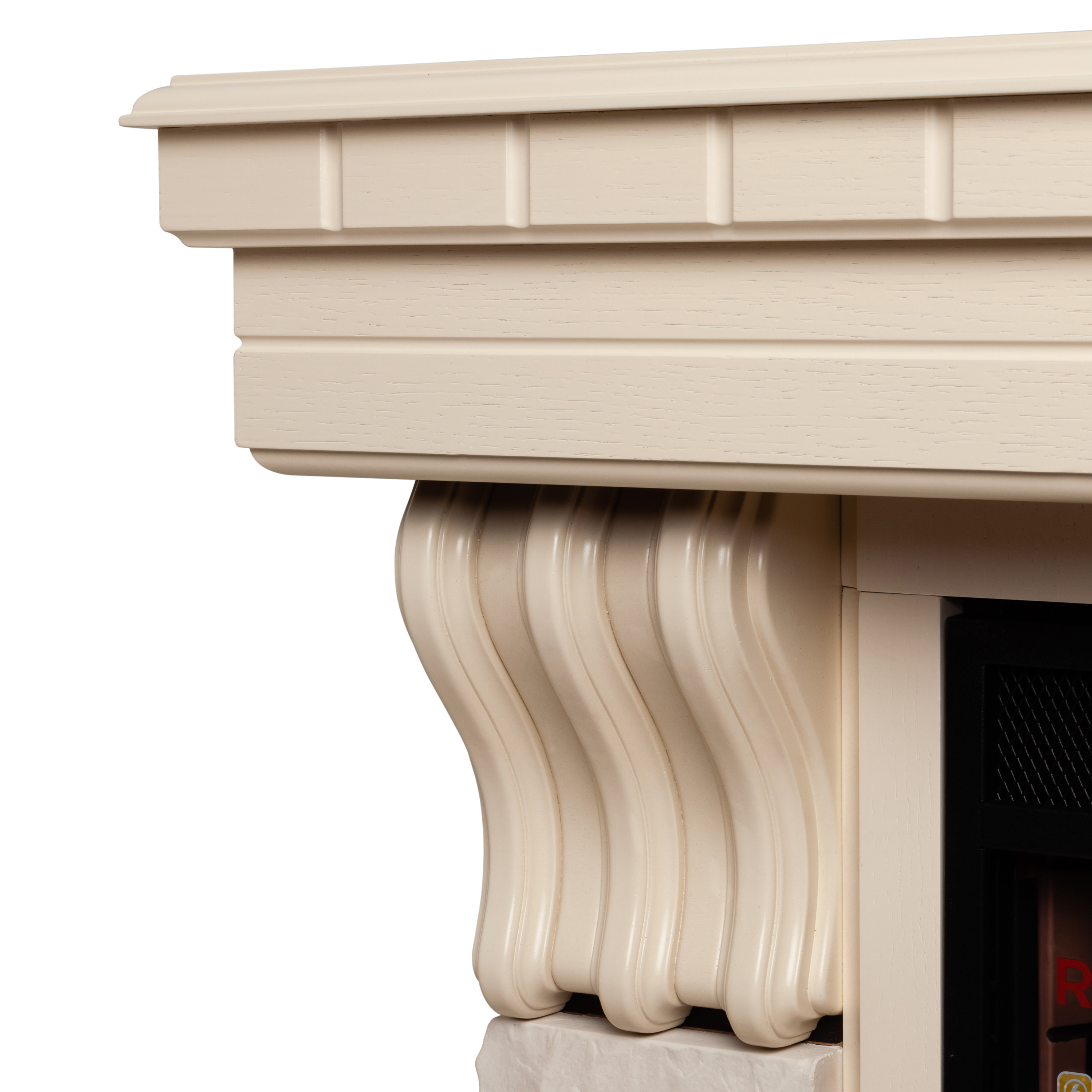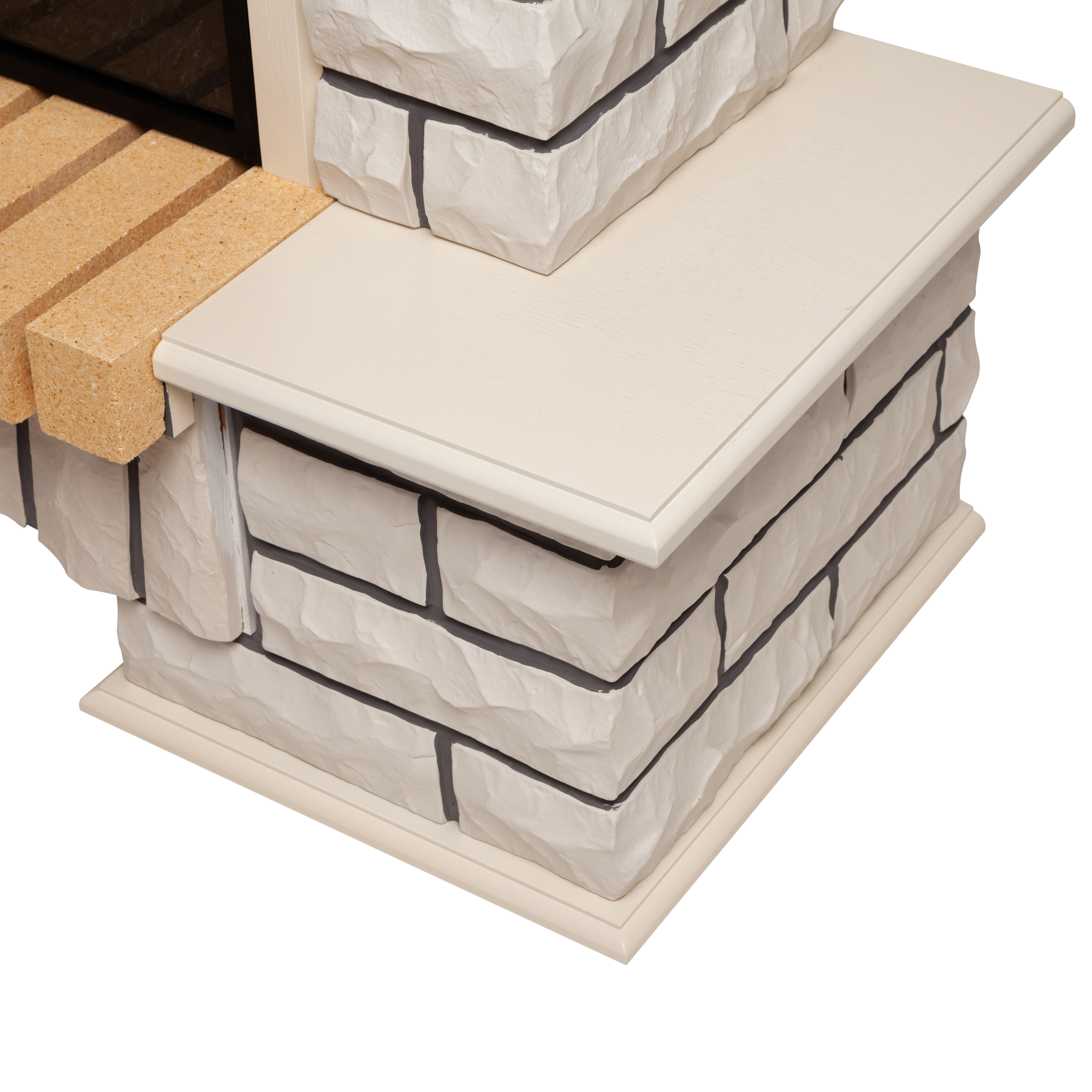 - Изготовлен из искусственного камня и МДФ, покрытого шпоном, - прочного, надежного и стойкого к любым внешним воздействиям материала. Сочетание светлого камня и дерева, декоративная фрезеровка. Дизайн дополнен выемкой для хранения дров в основании обрамления. С массивной каминной полкой.