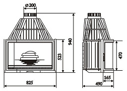 - Размеры очага ШхГхВ, (мм) 520x232x620