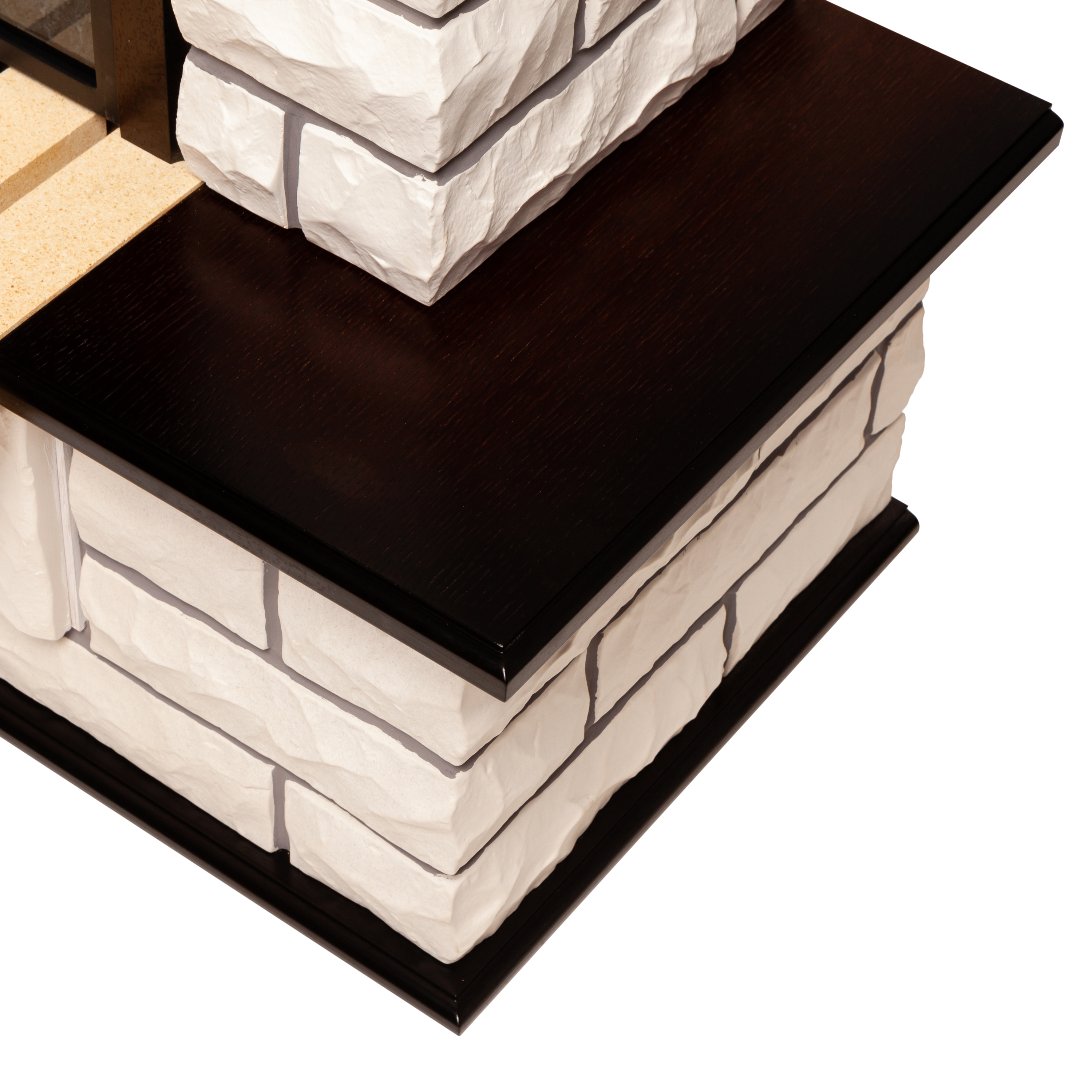 - Изготовлен из искусственного белого камня и шпонированного МДФ цвета античный дуб.