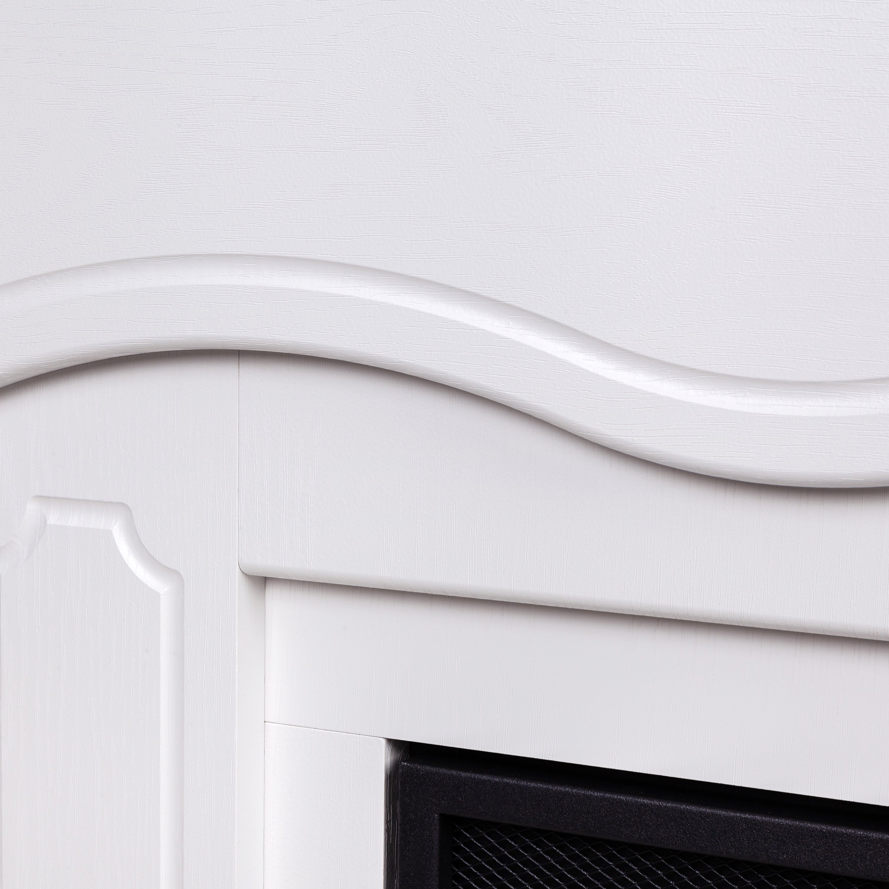 Обрамление дополняет современный широкоформатный электроочаг. Особенности конструкции очага предусматривают вывод горячего воздуха через специальную решетку в верхней части топки, за счет чего корпус и стекло не нагреваются и остаются безопасными  для окружающих. Широкий функционал включает регулировку яркости и мощности обогрева, звук потрескивания дров и пульт дистанционного управления.