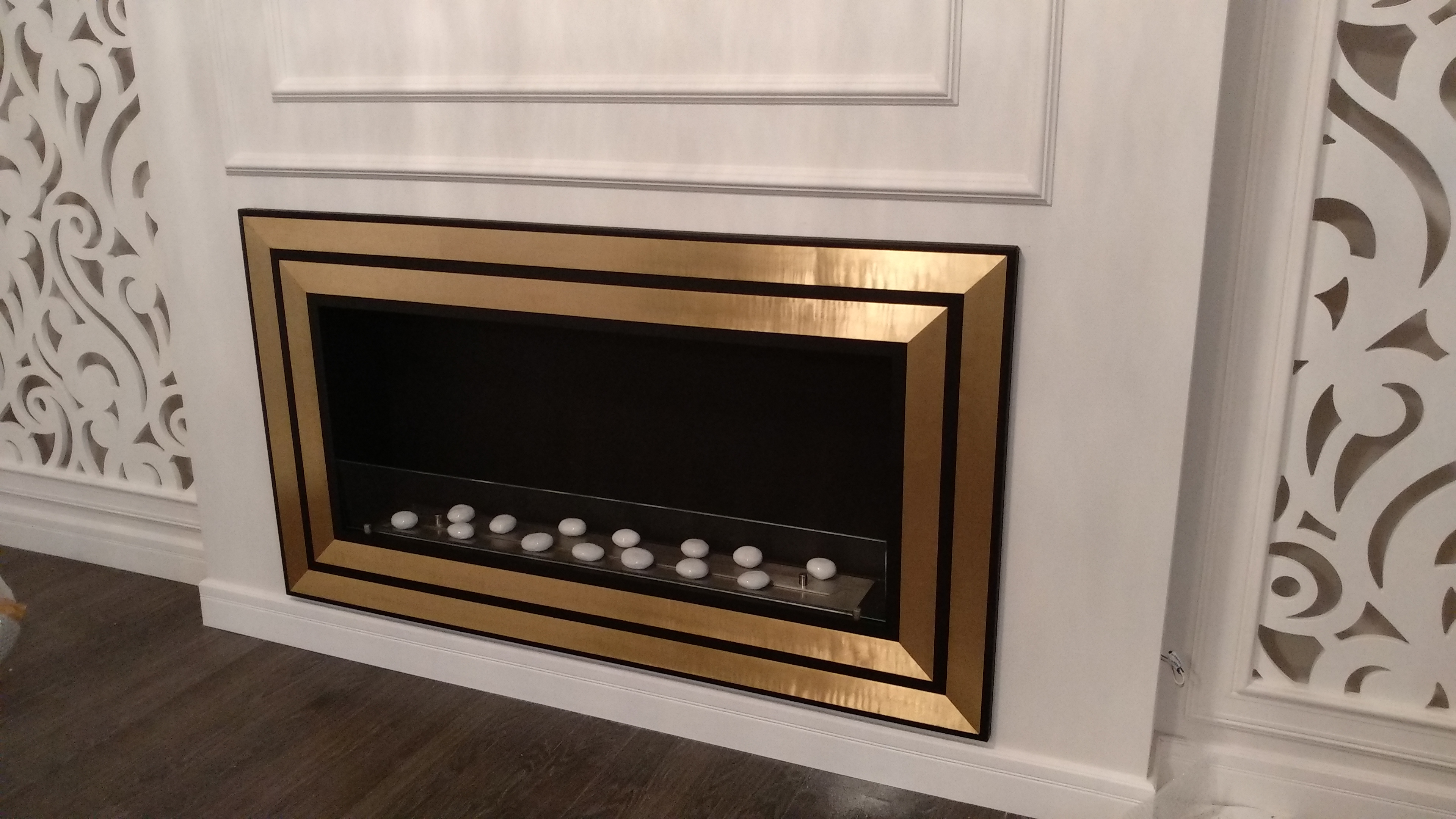 Проект № 105. Встраиваемый биокамин в золотой рамке