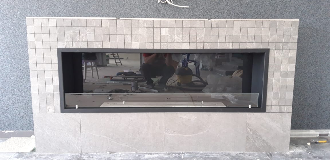 Биокамин был изготовлен под портал который самостоятельно сделал заказчик. Мы сделали чточно в его размеры и установили биокамин с линией огня 900 мм