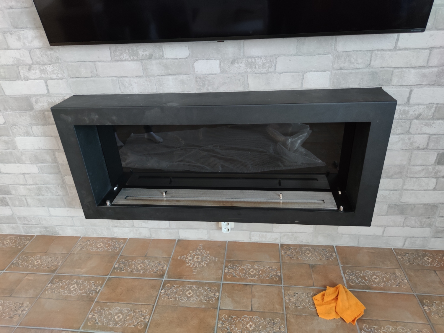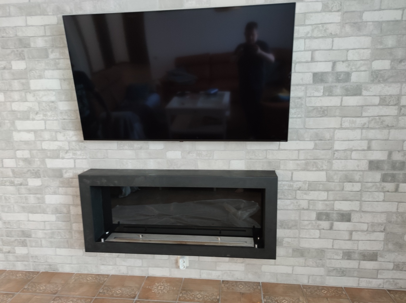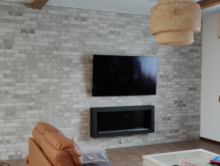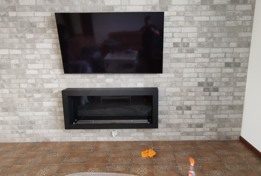 Задача была сделать именно настенный подвесной на стену биокамин под телевизор.