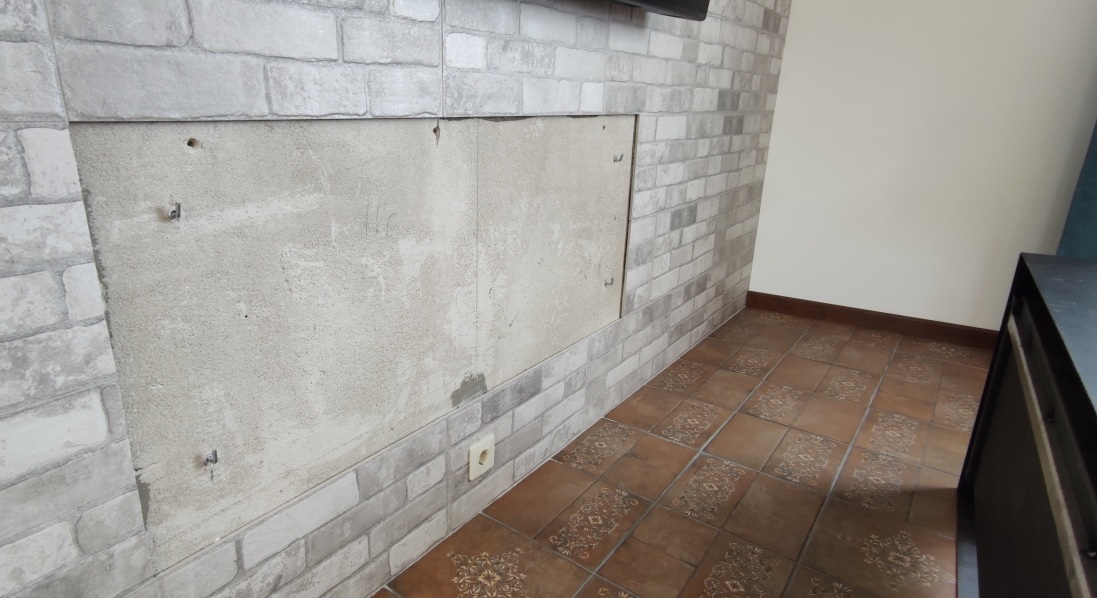 В этом случае узкая несущая стена из газосиликатных блоков. Биокамин подвешен на три анкера . Работу по навешиванию заняла 15 минут.
