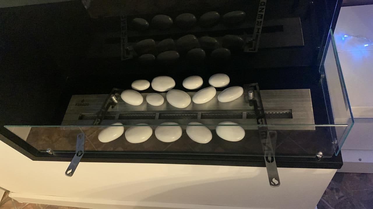 Данная модель может быть изготовлена по индивидуальным размерам. Встраивается в стены, проёмы, ниши, каминные порталы. Также дополнительно установили защитное стекло высотой 150мм.