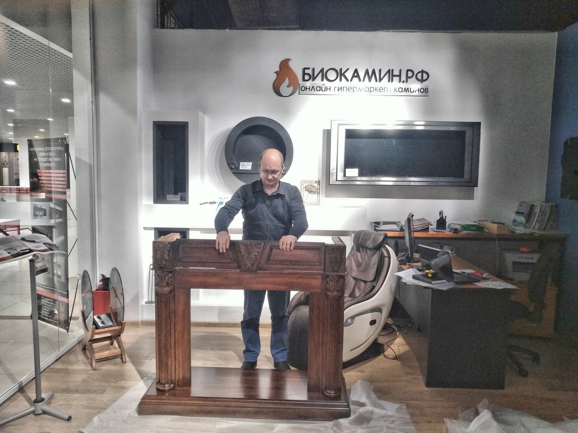 Мы привези, распоковали, собрали за 15 минут (Портал приходит в разобранном виде. Это очень удобно для транспортировки.) и установили шикарный портал Sheffield из МДФ и натурального шпона цвета грецкий орех.